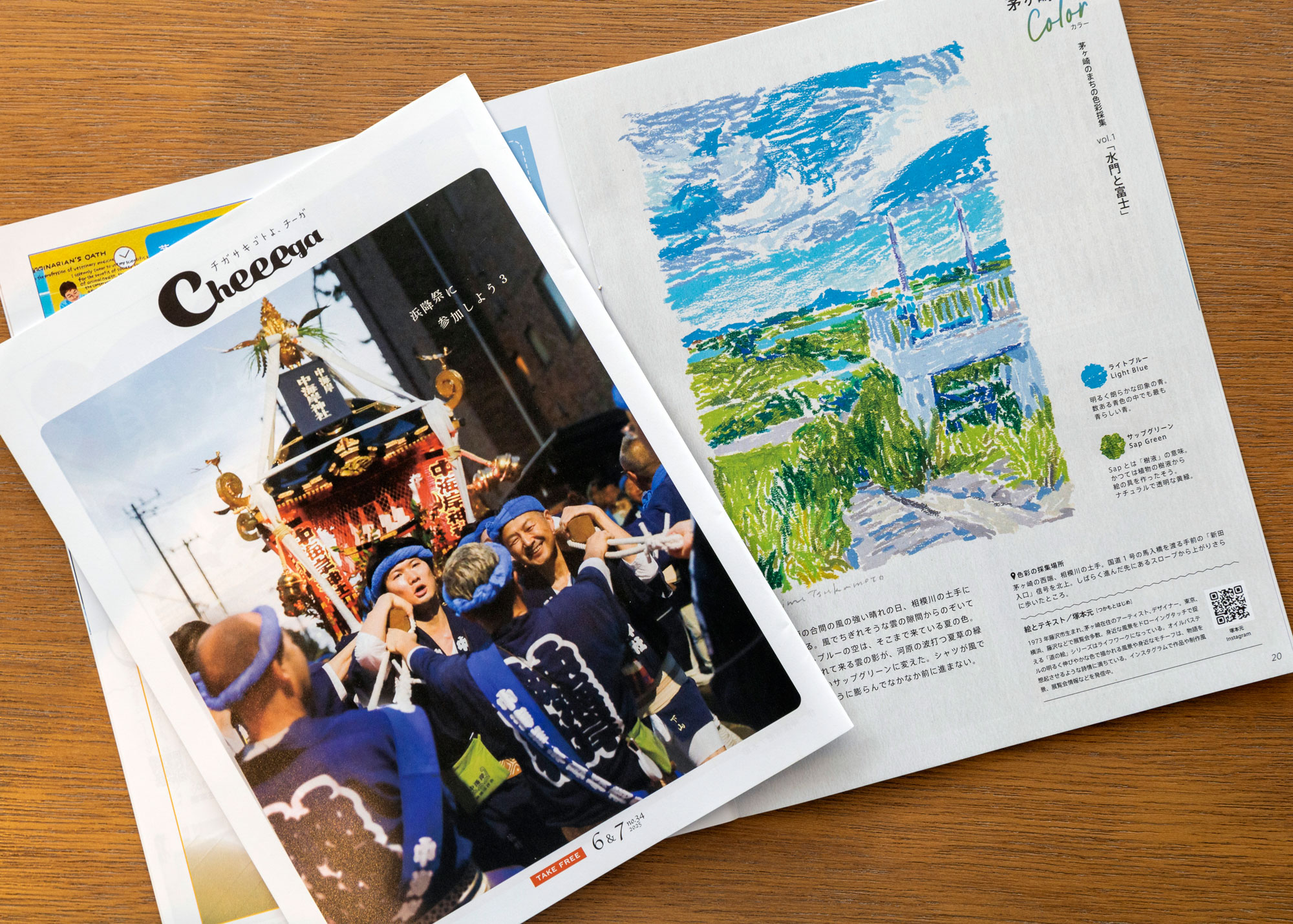 茅ヶ崎のローカル情報の決定版「Cheega(チーガ)」にて、2025年6&7月号より連載が開始しました。茅ヶ崎をテーマにした作品と、その作品に使われている色を、茅ヶ崎カラーとしてピックアップ。場所と色彩は切っても切れない関係で、その土地、その場所、その時間ならではの特徴となる色(とその組み合わせ)があります。感じ取る人によって、新鮮だったり、懐かしかったり。。